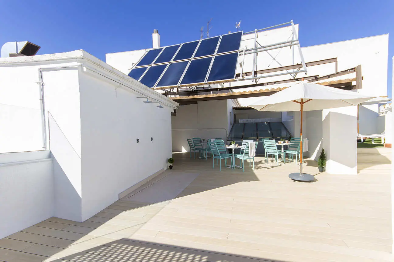 Relájese y disfrute de un momento de tranquilidad en nuestro solárium, disfrute de nuestro maravilloso tiempo, de los magníficos rayos del sol andaluz en nuestra terraza, situada en la azotea del hotel, en la 4ª planta.